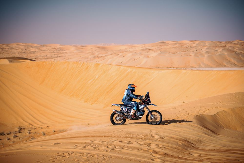 Durante la décima etapa, el mar de dunas puso a prueba a los pilotos. Los motociclistas enfrentaron un recorrido distinto al de los autos, con un largo enlace inicial y una especial más corta, de 117 kilómetros, pero marcada por la dificultad de las dunas que dominaron el terreno.