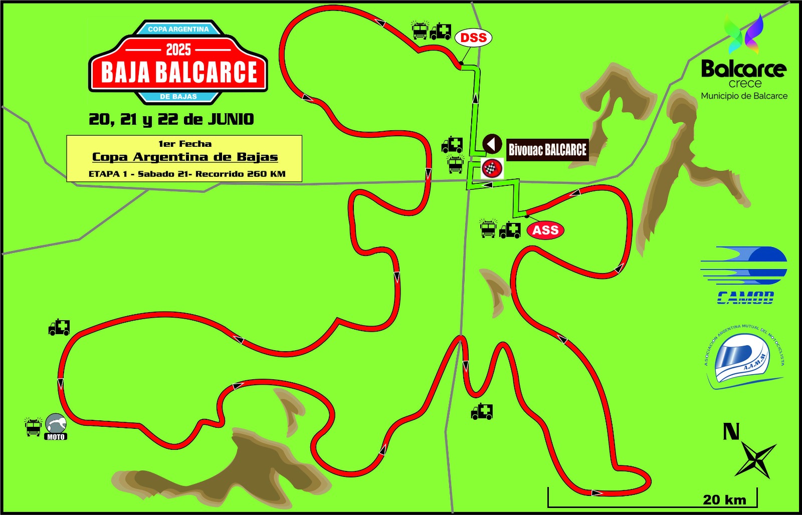 El sábado 21 de junio se disputa la Etapa 1 de la Baja Balcarce 2025. La primera moto saldrá del vivac a las 7:30, para largar la especial a las 8:00, si las condiciones climáticas lo permiten.