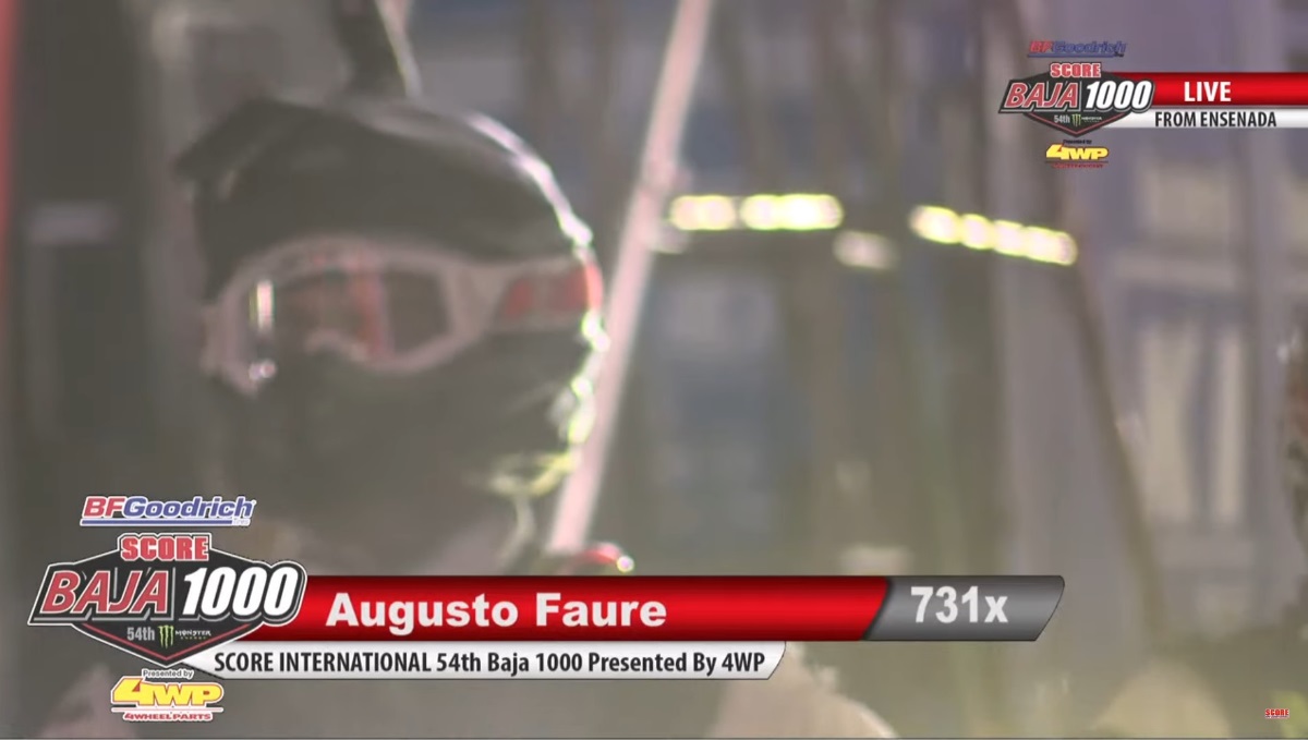 Faure forma parte de la estructura Monkey Bussines, donde también corren los bolivianos «Chavo» Salvatierra y Fabricio Fuentes. Por el momento, Augusto registró con éxito su paso por la milla 134 a una velocidad de 35 kilómetros por hora. Su número es el 731X.