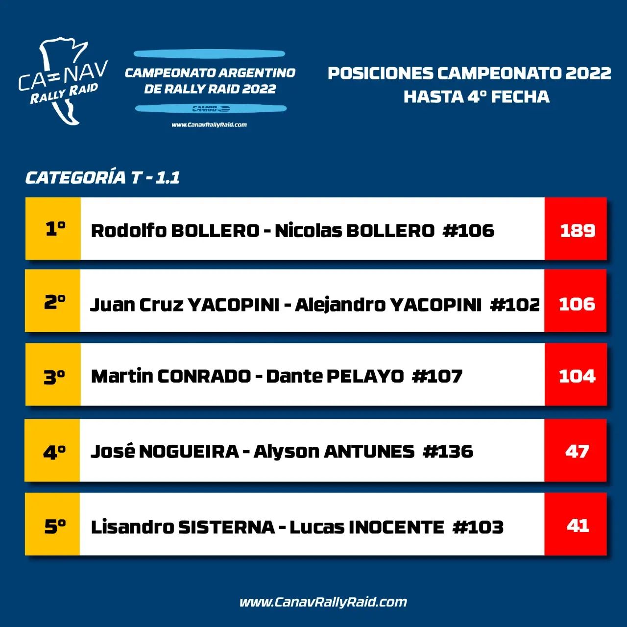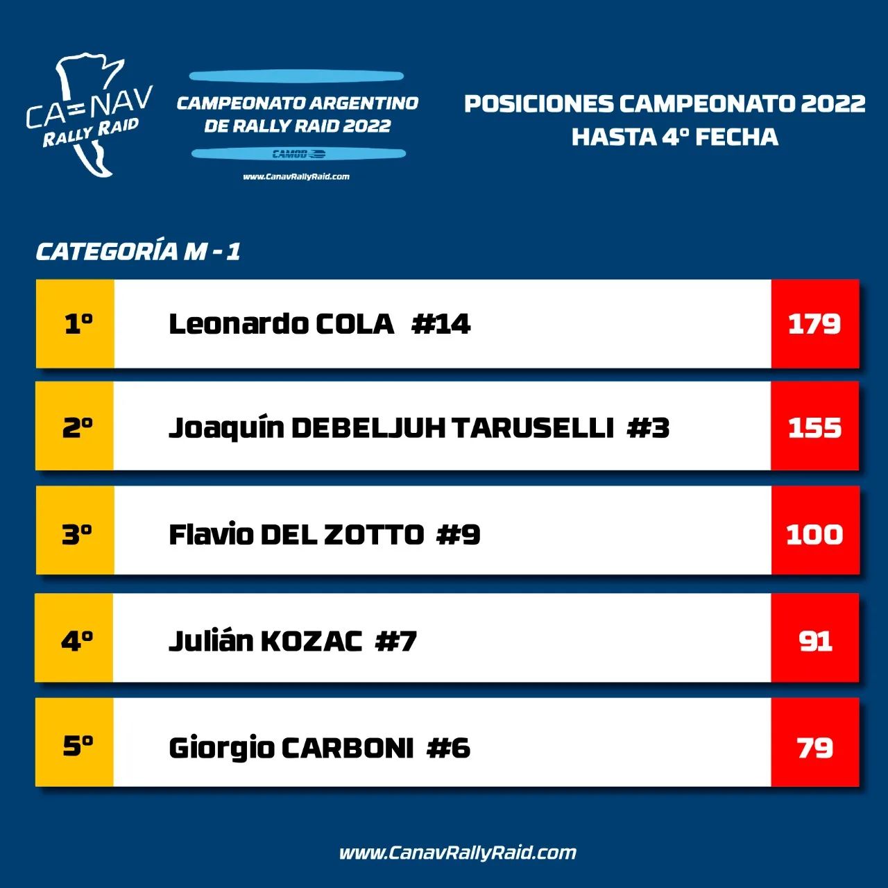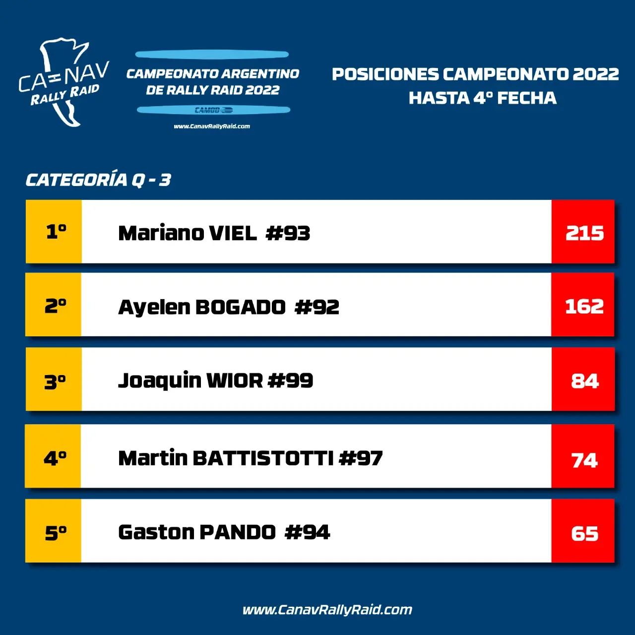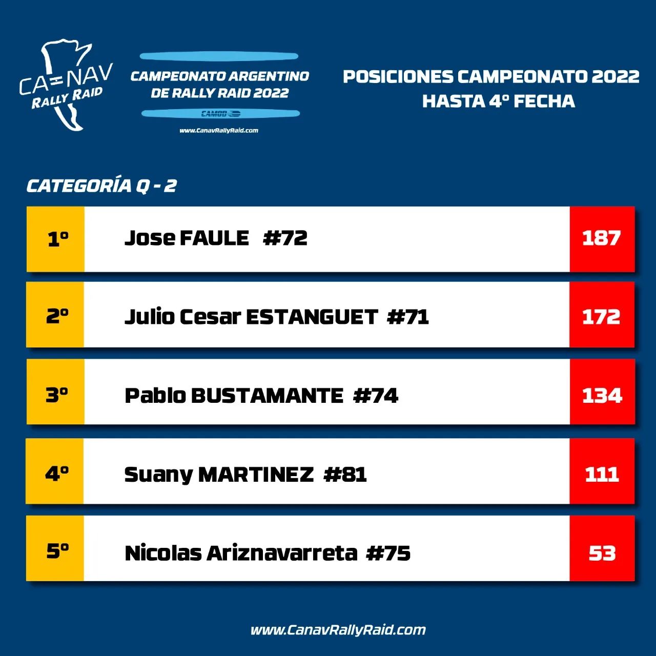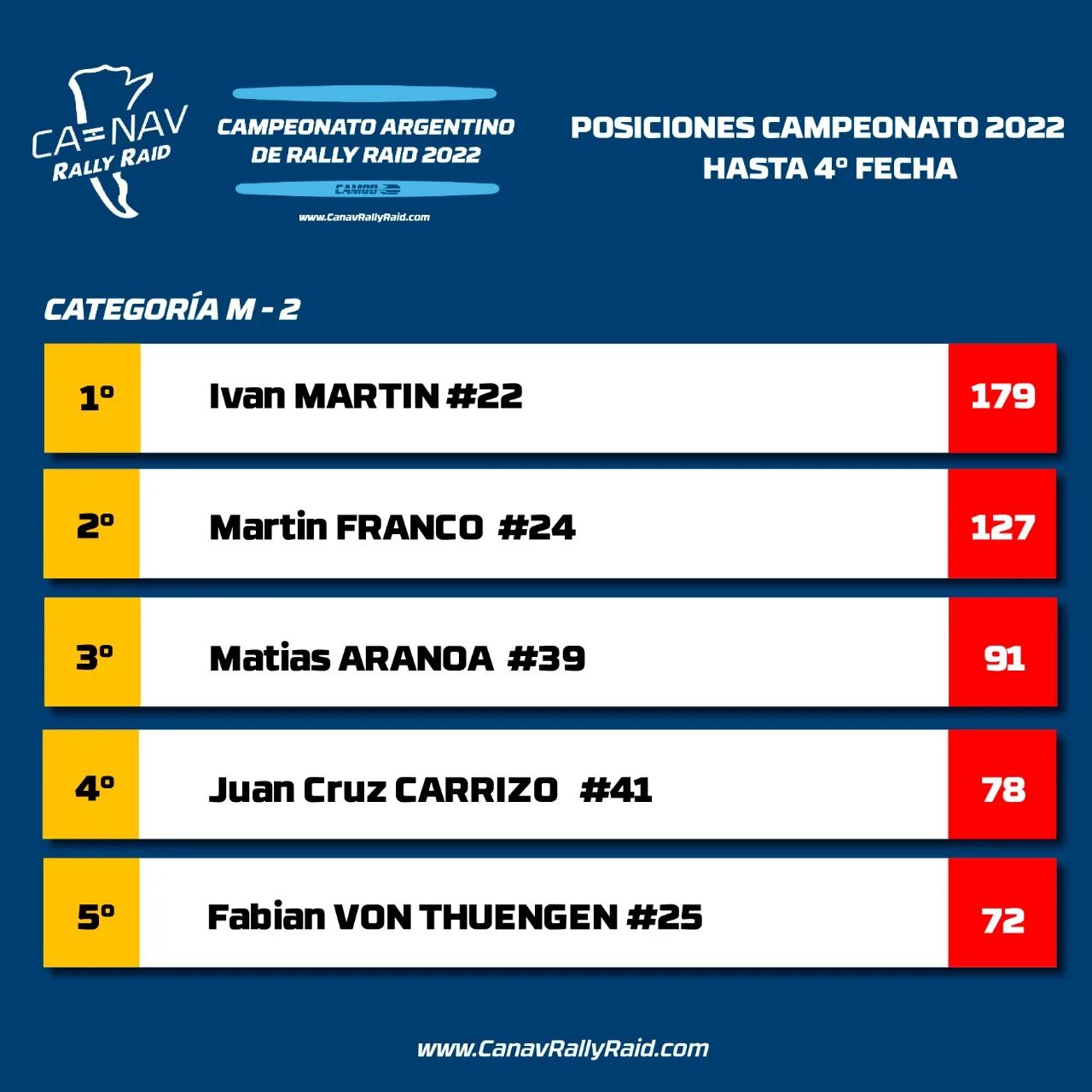 Resultados de todas las categorías: https://www.canavrallyraid.com/posiciones-2022/