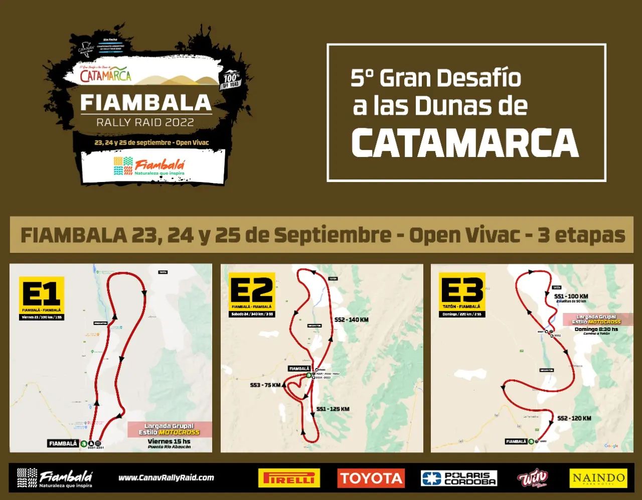 Será Fiambalá, un histórico lugar para la actividad, el que reciba a los protagonistas de esta temporada 2022 del certamen fuera de pista más importante del país. Con tres días de intensa acción en Catamarca, los pilotos aprovecharán para ponerse a punto con miras al Dakar 2023 y también al SARR 2023, carrera que volverá en febrero del próximo año a estas tierras del norte de Argentina.