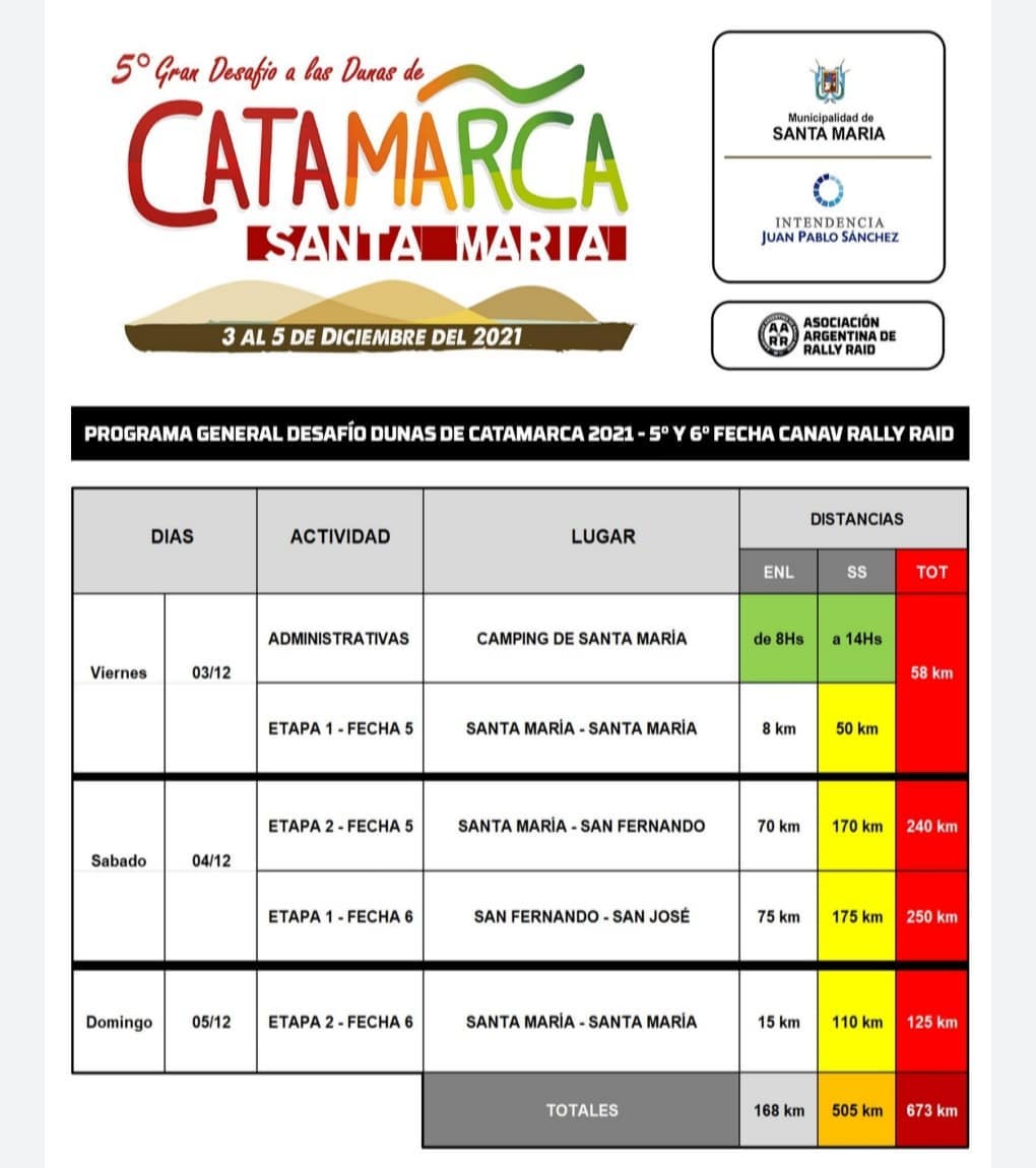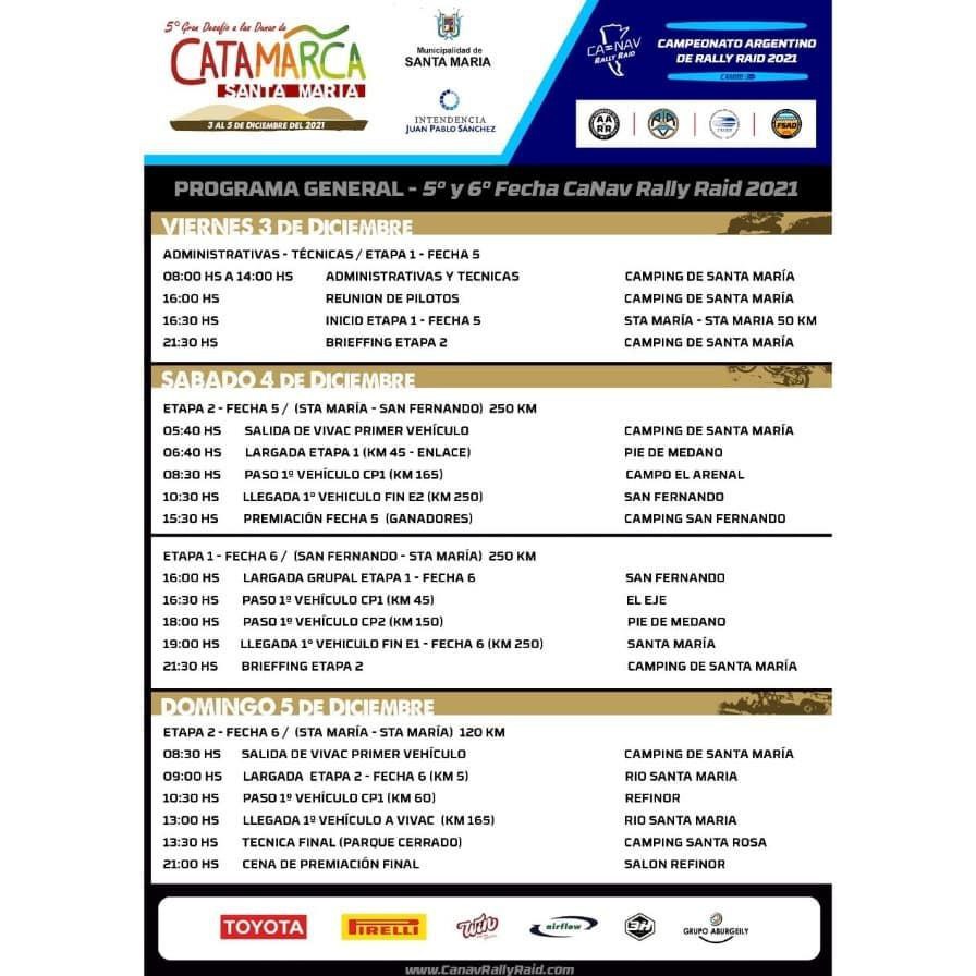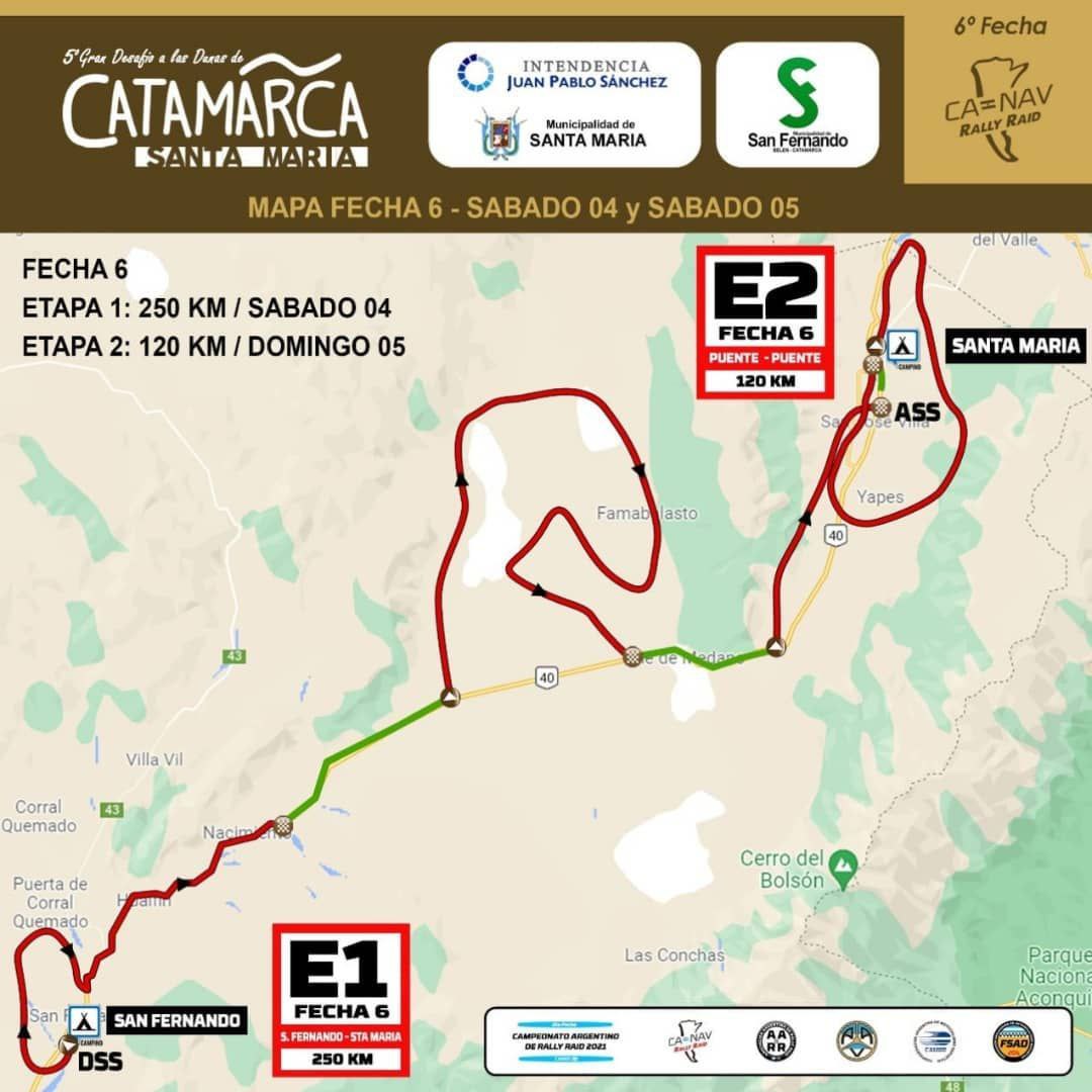 Esta sexta y última fecha comenzará el sábado en San Fernando, rumbo a Santa María, con otros 175 kilómetros de especial, llegando al vivac base de la carrera. Sin dudas, será un sábado muy largo, con dos tramos de carreras complejos en el dificil desierto de Catamarca.