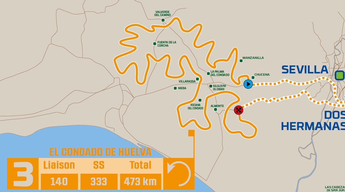 El sábado 22 de octubre la especial del día comenzará en las proximidades de Chucena, y los vehículos transitarán las localidades de Manzanilla, La Palma del Condado, Valverde del Camino, Fuente de la Corcha, Villarrasa, Nieba, Rociana del Condado y Almonte. Los habitantes de la vecina ciudad de Sevilla podrán seguramente hacerse una escapada para ver a los vehículos en competencia. Luego, los protagonistas volverán en enlace hacia el campamento del Gran Hipódromo.