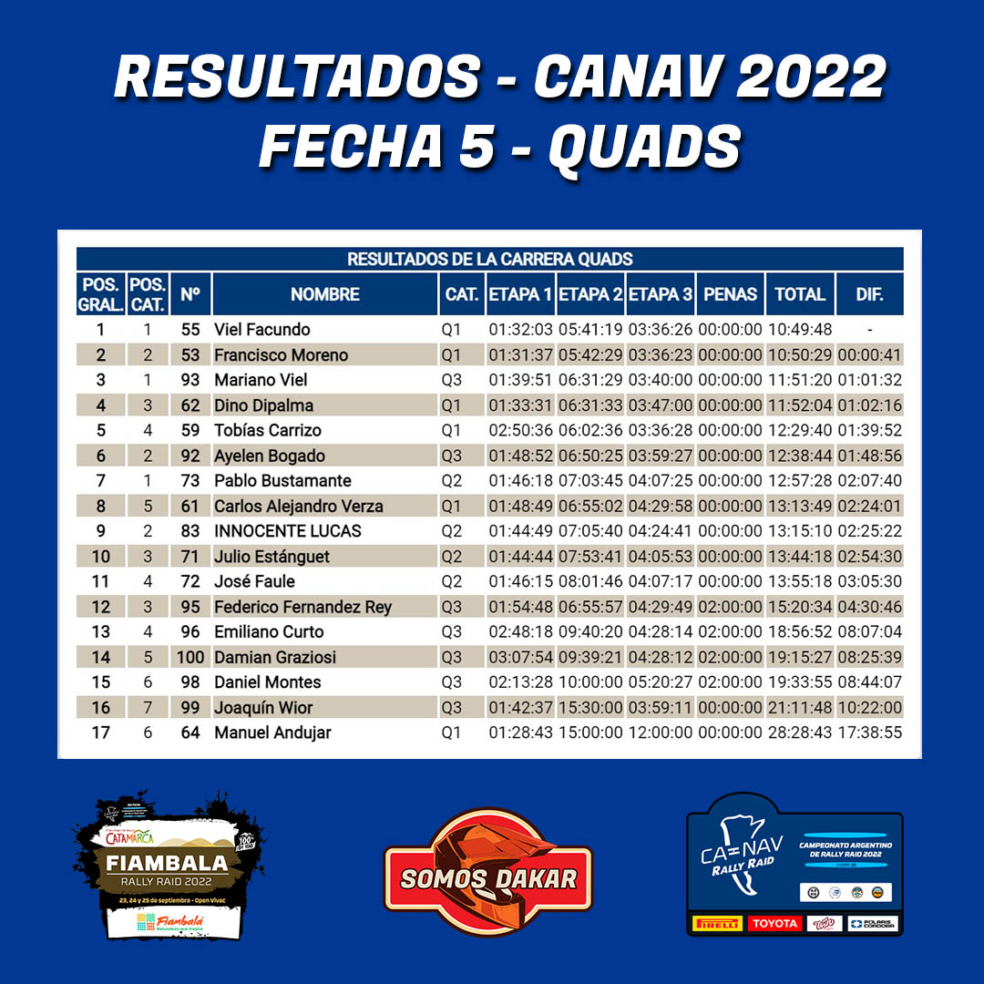 En Q3, Mariano Viel logró el primer puesto, quedando también en la general de la categoría Quads, con Ayelén Bogado y Federico Fernadez Rey cerrando el top 3 de su divisional.