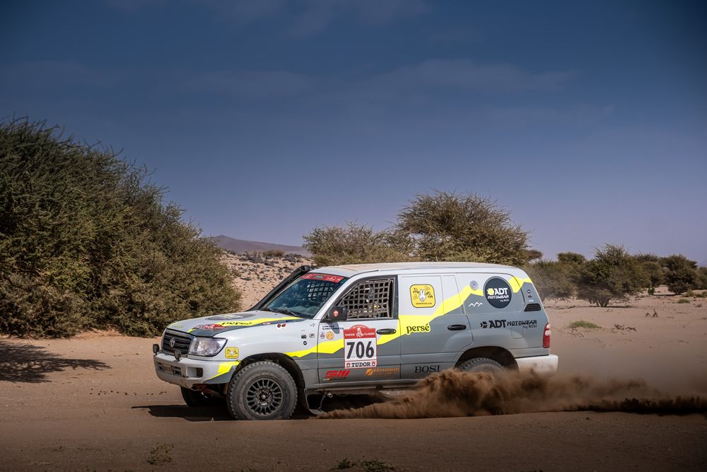 Con su Toyota Land Cruisser de los años 90, “Jota” Velez y su navegante marcaron el trayecto más prolijo y fueron los que menos penalizaron en su categoría, la H4, reservada para los vehículos más veloces de este curioso parque automotor que acompaña al Dakar.