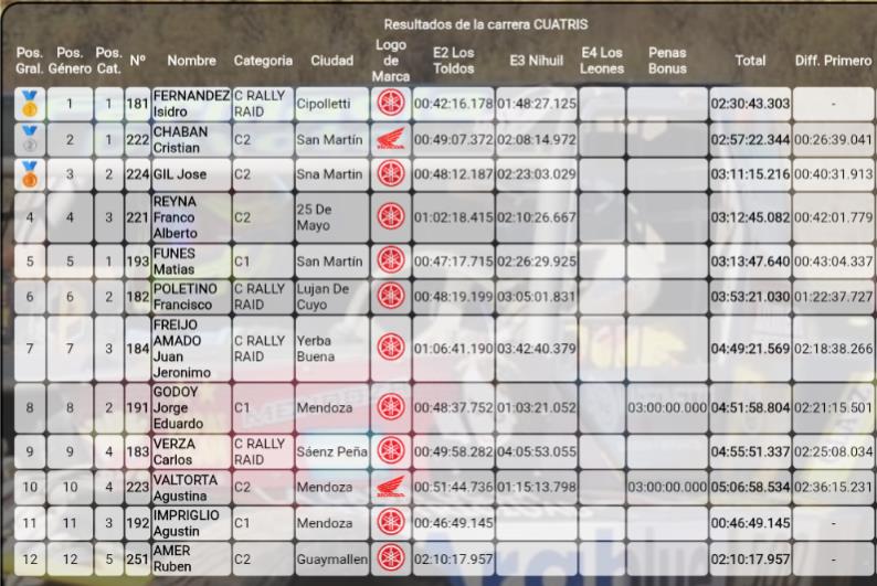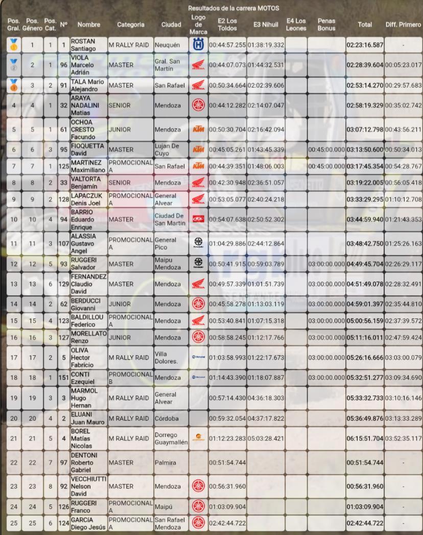 - Mario Alejandro Tala (San Rafael) – 02:53:19.420 (+30:02.833)