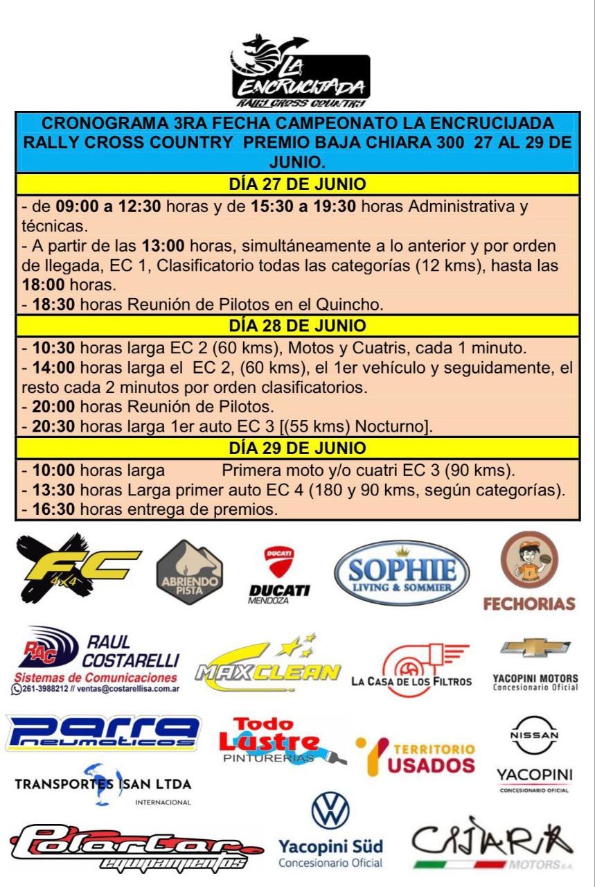Con ya más de 90 tripulaciones inscriptas, la Baja Chiara 300, edición 2025, vive sus momentos previos. Los protagonistas y la organización de La Encrucijada ultiman detalles para lo que será la tercera fecha de esta temporada que ya tuvo exitosas citas en General Alvear y Uspallata.