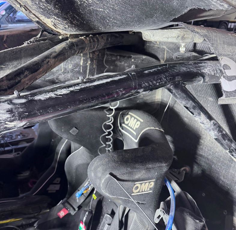 El periodista español Enrique Naranjo comentó vía X que “La barra sobre la cabeza del piloto está levísimamente doblada, apenas 2 mm. No se aprecia siquiera pasando la mano pero…”, dando a entender que la medida de la FIA es bastante rigurosa, aunque el reglamento indica que ante el más leve daño el vehículo no puede seguir en carrera. Esta foto lo muestra: