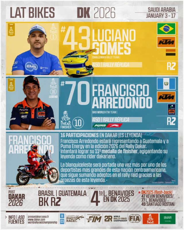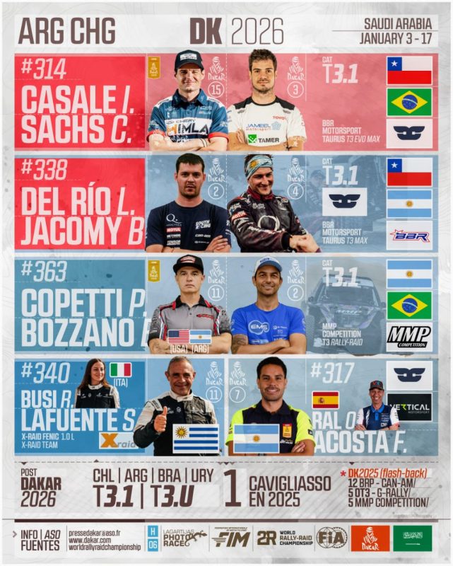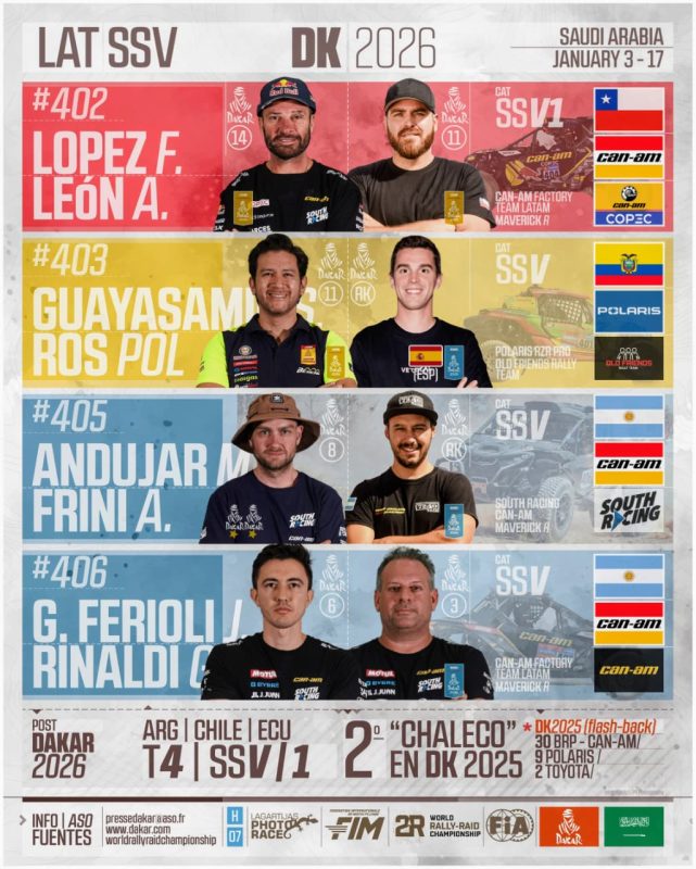 Es por eso que en este Dakar 2026, algo lejos temporalmente, y muy lejos geográficamente, todavía habrá una gran cantidad de latinoamericanos que representarán a las naciones de estas latitudes.