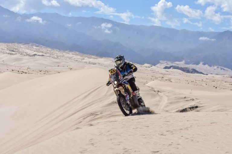 El piloto colombiano del VRV Racing Team pudo terminar una etapa muy complicada en las dunas del Tatón, en Catamarca. Allí, perdió varias horas tras unas enterradas, pero pudo seguir en carrera. Aún sigue liderando…