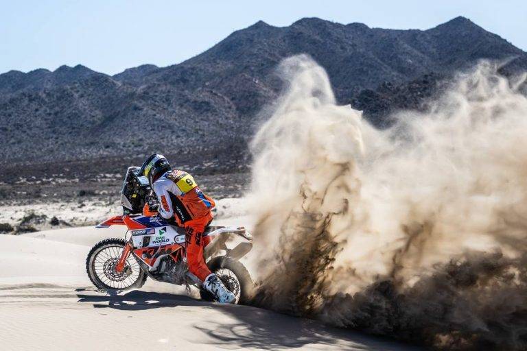 • La etapa 3 en los alrededores de Puerto Peñasco tuvo 350 kilómetros de especial, la más larga de la carrera. • En motos, Daniel Sanders (Red Bull GasGas Factory Racing) ganó de vuelta tras…