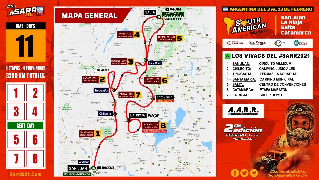 También es importante mencionar que el recorrido es una especie de bucle, puesto que luego de llegar a Salta, la caravana del SARR volverá a descender por el mapa de Argentina para encarar la última semana, con etapa maratón entre Santa María y Catamarca. Esta última ciudad, San Fernando del Valle de Catamarca, será también una de las nuevas localidades que conocerán los motores de la carrera.
