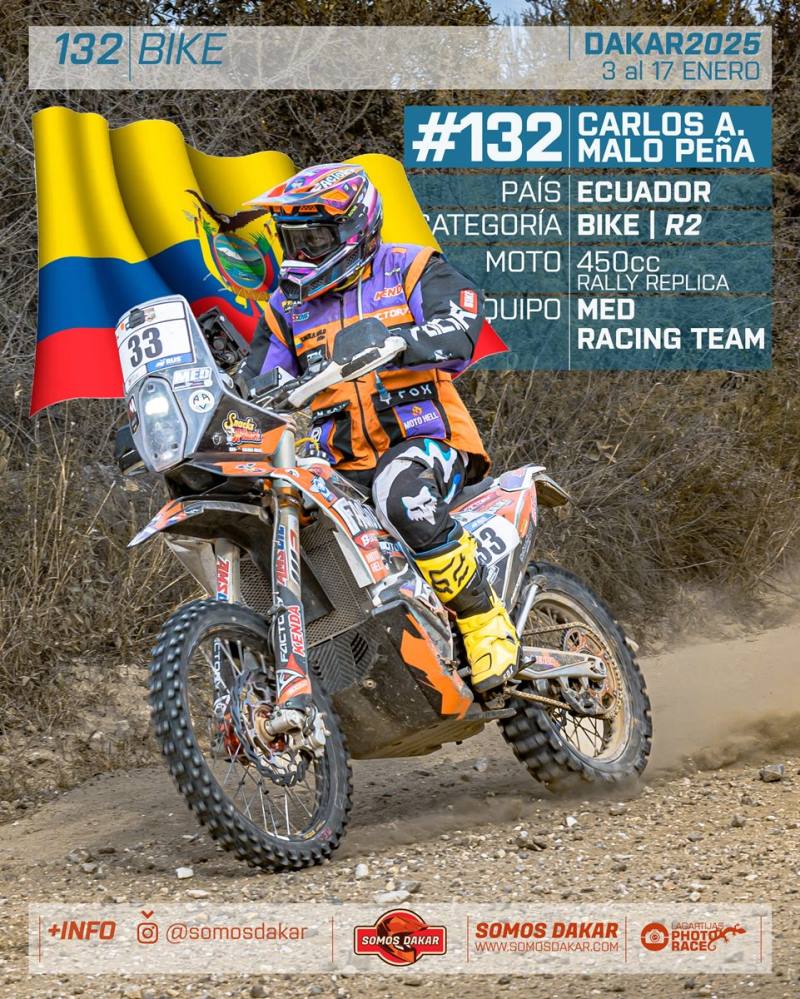 El piloto ecuatoriano del Mafia Moto Crew sufrió una caída en la etapa 6 y debió abandonar a causa de las lesiones ocasionadas. Así, no podrá cumplir con el objetivo de finalizar el Dakar en su debut.