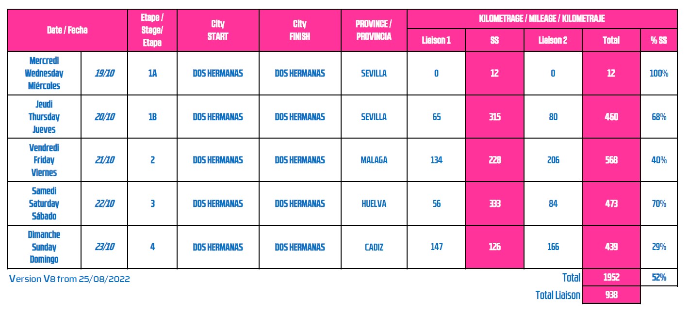 A partir del 20 de octubre y hasta el 23, se disputarán las cuatro etapas. Es importante entender que solo habrá un campamento, por lo que todos los vehículos saldrán en enlace hasta el punto de largada de la especial desde el vivac central en el Hipódromo.