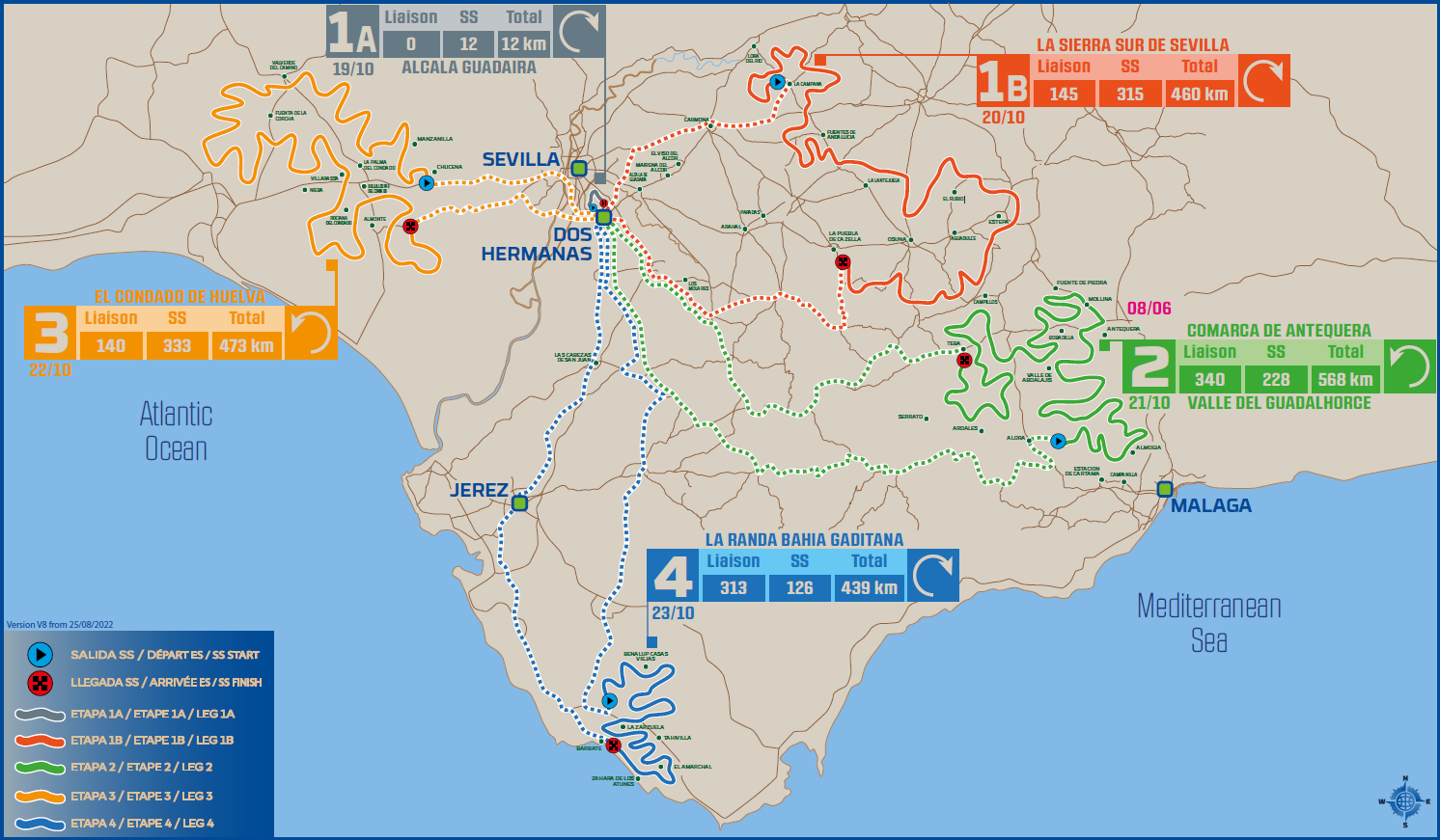 La etapa 1B, primer gran tramo cronometrado, se disputará entre las localidades de La Campana y Puebla de Cazella. La etapa 2 comenzará cerca de Alora y finalizará en Teba. La etapa 3 irá desde Chucena hasta Almonte. En tanto que la etapa 4 será entre Benalup Casas Viejas y Barbate.